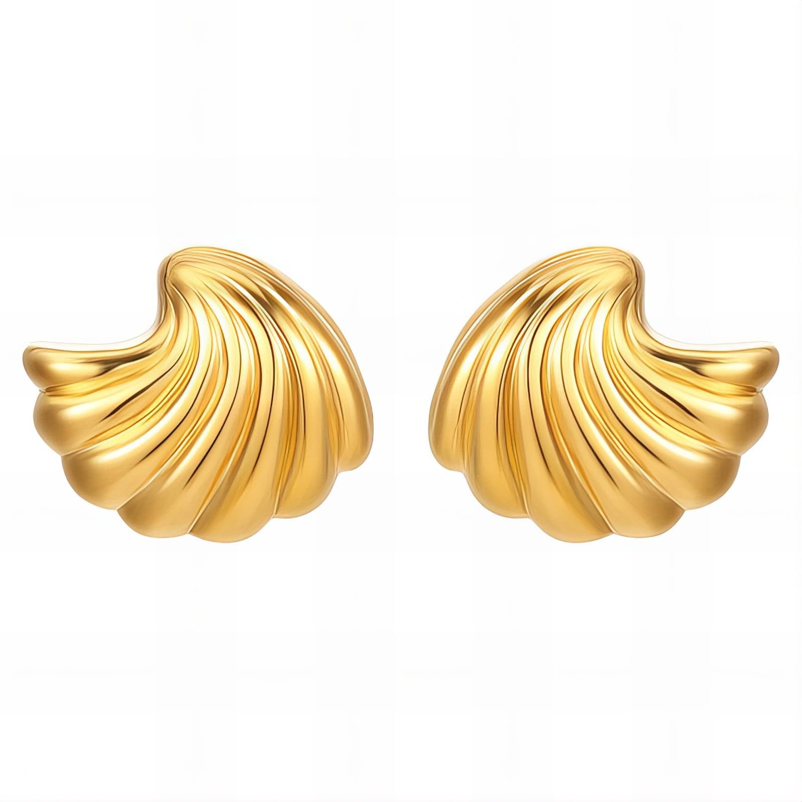 Featuring sculpted golden shells with smooth curves and radiant polish, they elevate your style with effortless elegance.