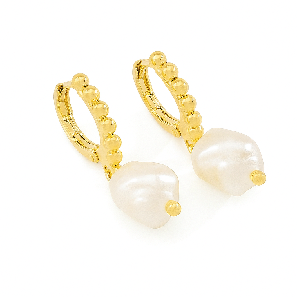 Plated in 18K Brazilian gold, they feature a natural-style pearl that beautifully captures the light timeless, delicate and full of feminine charm.
